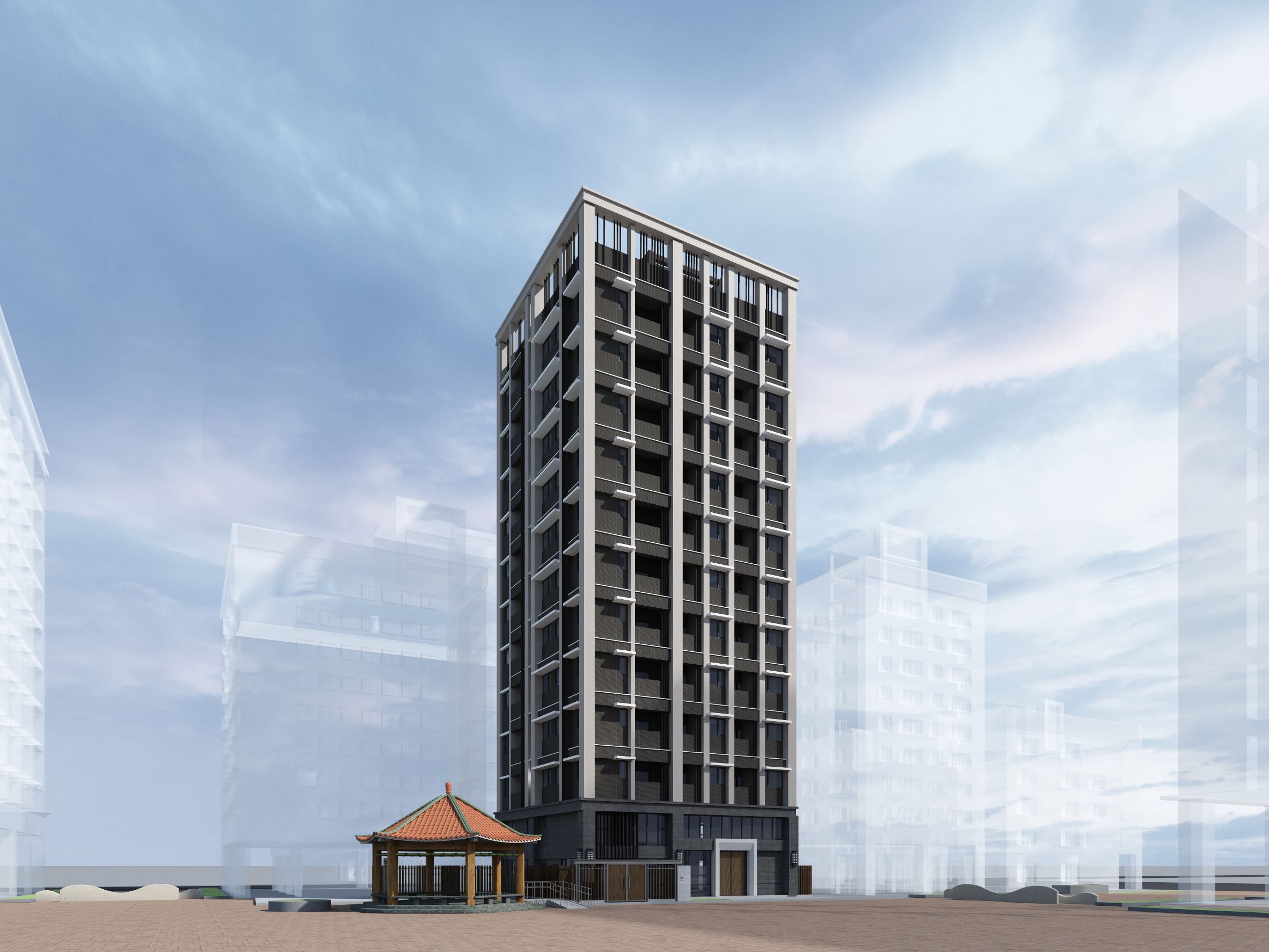 樓層規劃地上11層,地下1層建築,共有22戶住家,20戶一般事務所,格局坪數規劃二房(15.74、20.57坪) 、三房(23.78坪)。結構採RC鋼筋混凝土,建材配備有櫻花三機廚具、TOTO衛浴、SVAGO洗脫烘衣機、三星三合一電子鎖、國際牌暖風機、ERIE全棟淨水機、當層排氣。